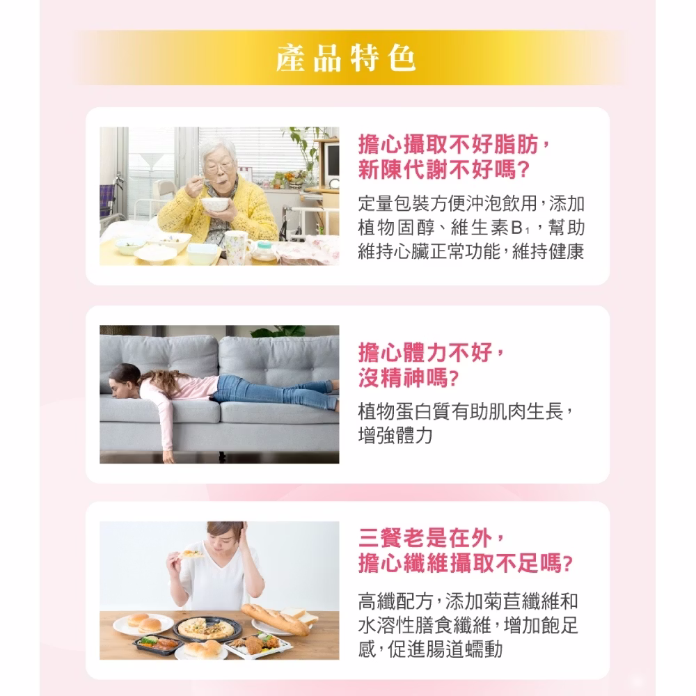 ☑均衡優蛋白 ☑高鈣 ☑高纖