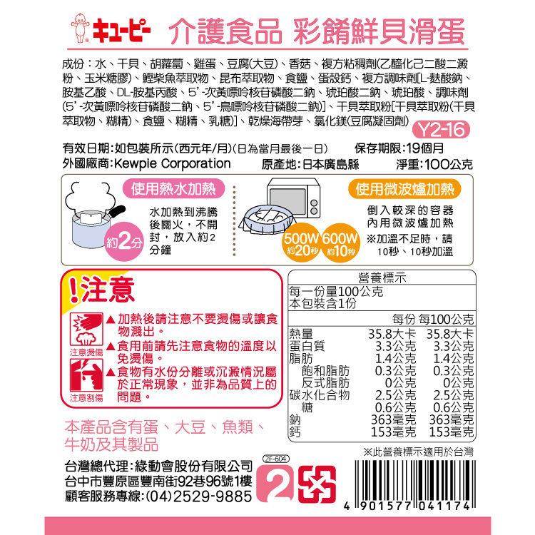 KEWPIE  Y2-16介護食品彩餚鮮貝滑蛋
