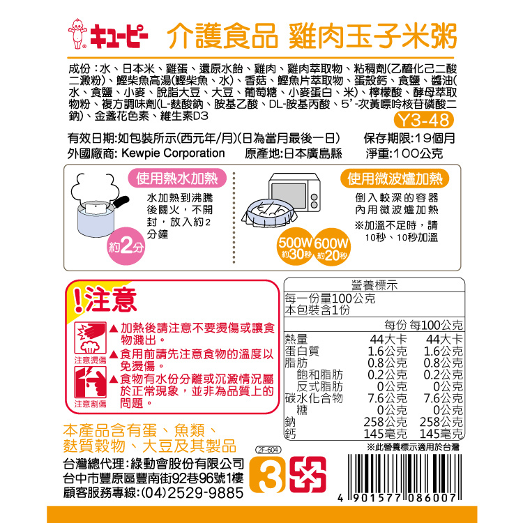 KEWPIE Y3-48介護食品雞肉玉子米粥