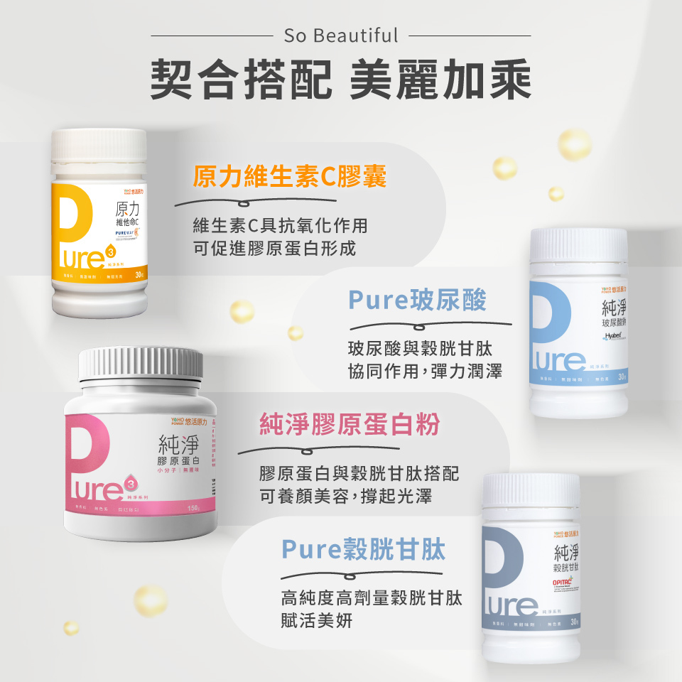 當然可以!悠活原力推薦 3 個適合搭配 Pure穀胱甘肽食用的產品: