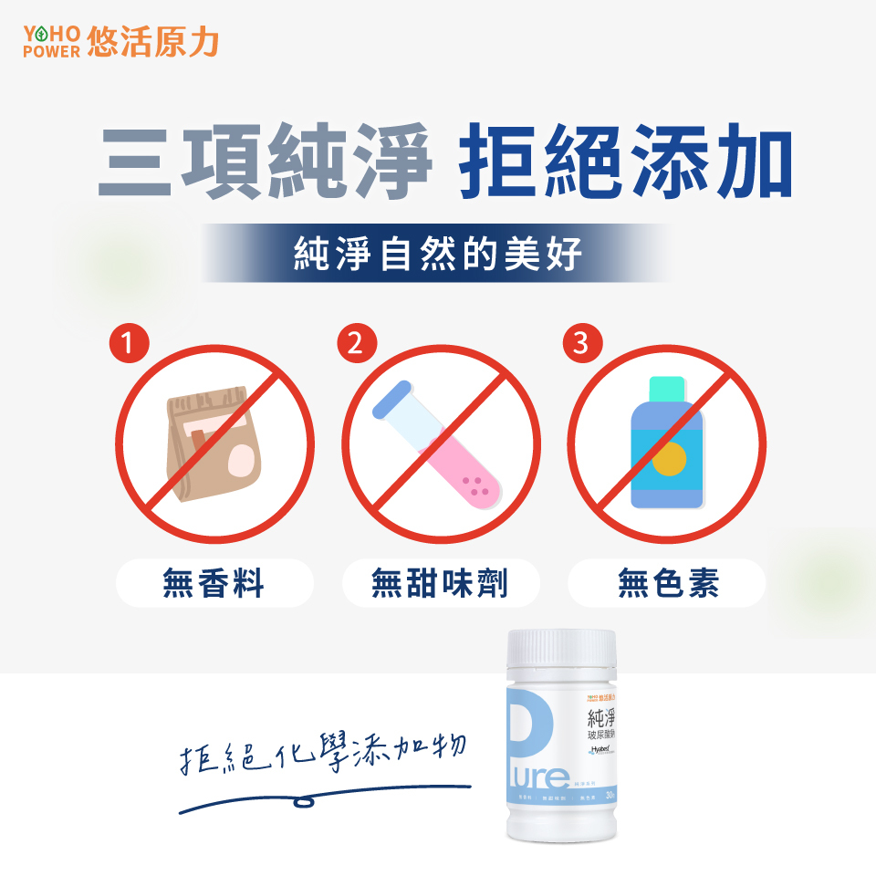 Pure玻尿酸鈉沒有添加雌激素等刺激成分,生理期、孕婦、哺乳婦女都可以安心食用!