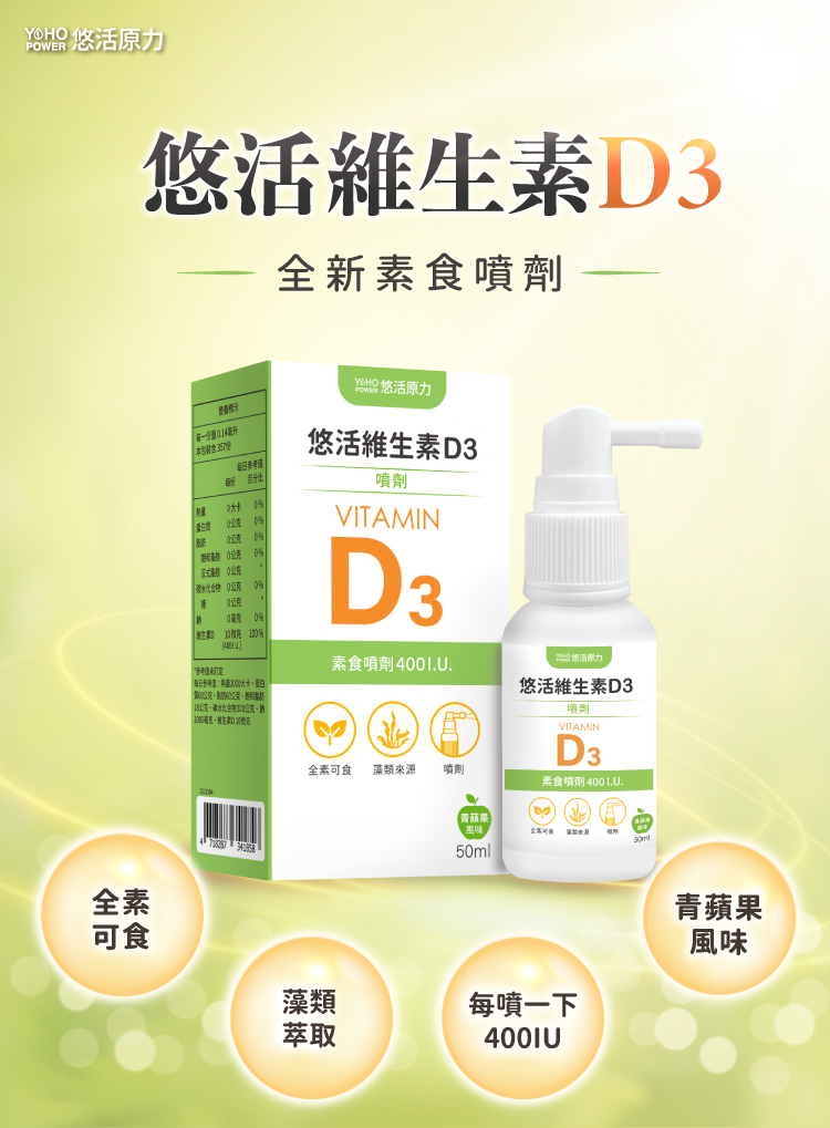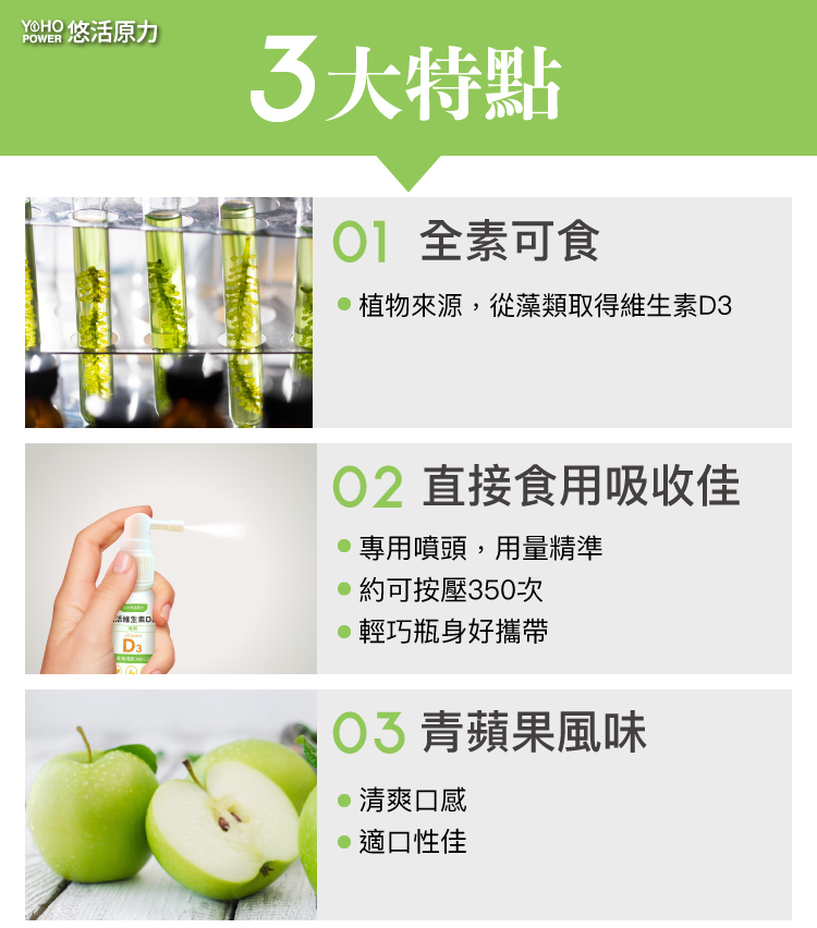 將「悠活維生素D3素食噴劑」設計出3大特點