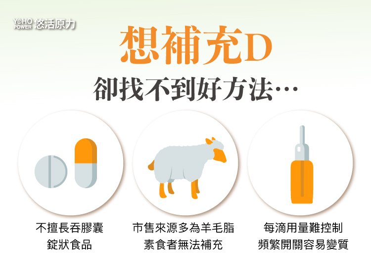 而錠狀是由羊毛脂製成,比較適合葷食者;而如果銀髮族、茹素者,可選擇 D3 素食內服液。