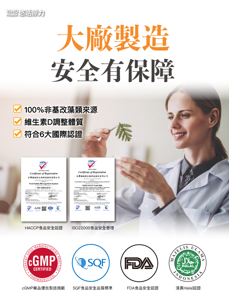 藻類萃取的維生素D(維他命D)為水溶性成份,因此無論何時都可以快速補充。