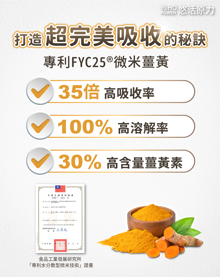 | 專利 FYC25® 微米薑黃 | 其他薑黃 | |