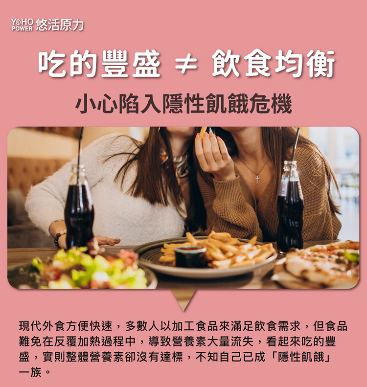 就算平常有吃飽,但因為長期只攝取某些營養素,或長期缺乏某些營養素,導致身體其實是缺乏營養的