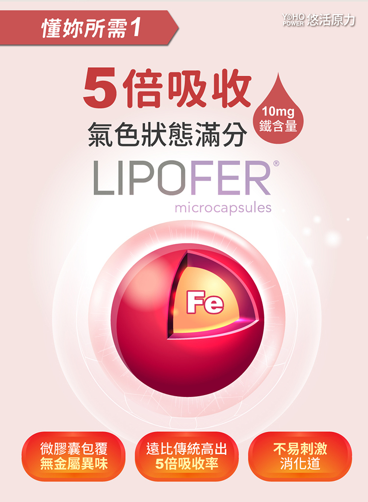 ●微膠囊化鐵,高生物利用率,光彩好氣色