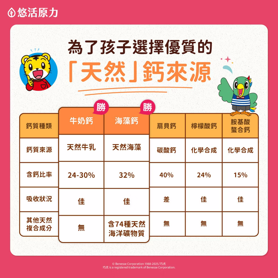 ◆ 天然雙鈣:鈣質來源單純且又安全