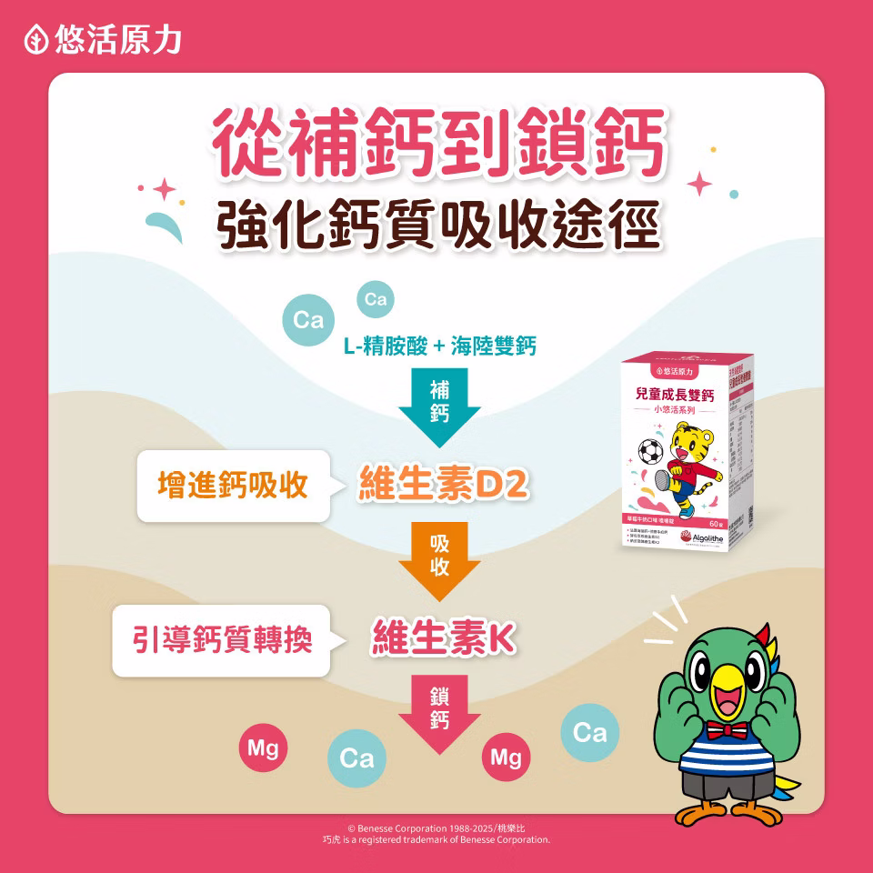 因為小悠活兒童鈣咀嚼錠擁有下列特點: