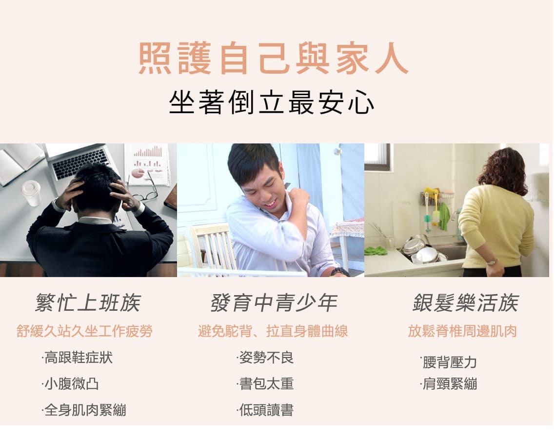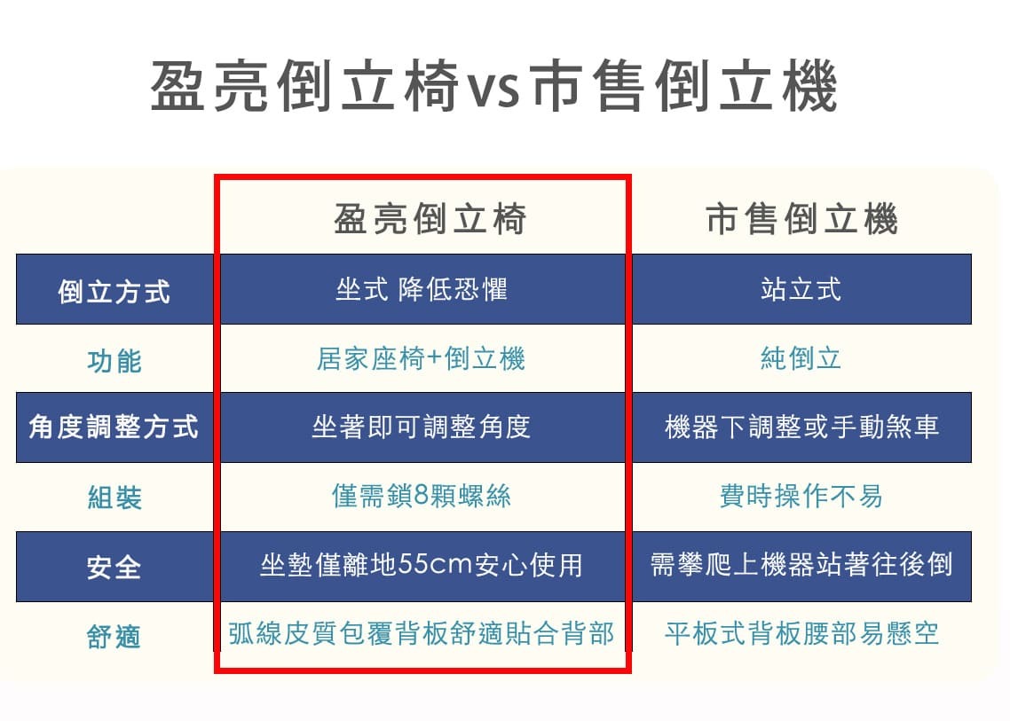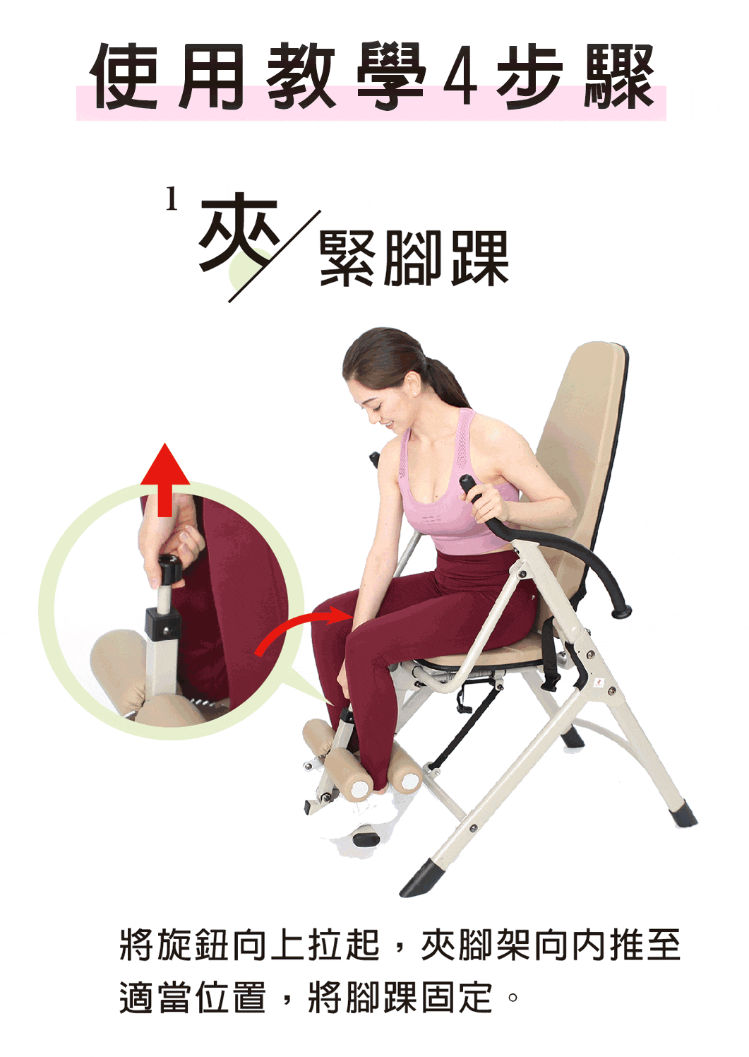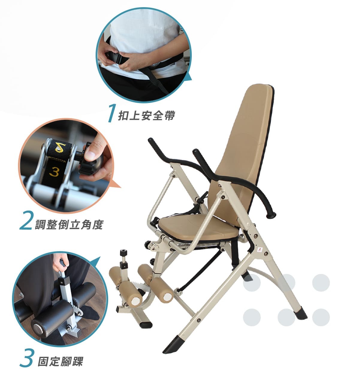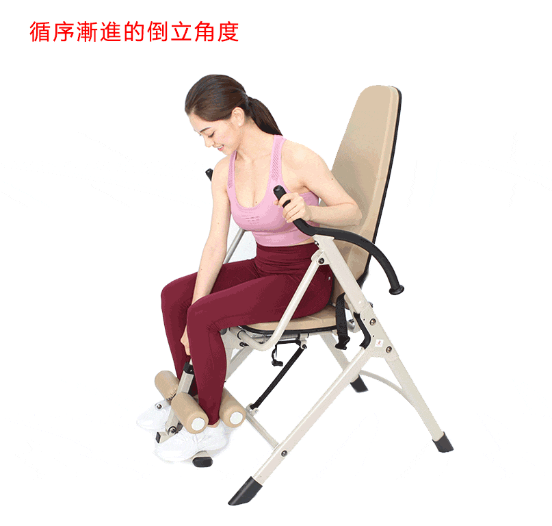 倒立椅能讓使用者在倒立前後,都感到安全且安心。