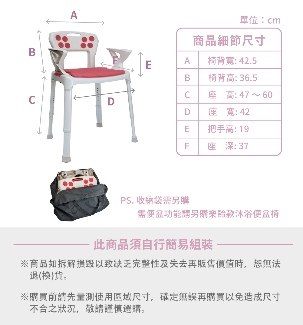 ※如需便盆功能請選購[樂齡旅行-便攜式沐浴便盆椅]