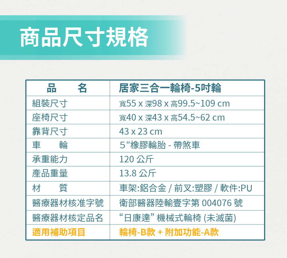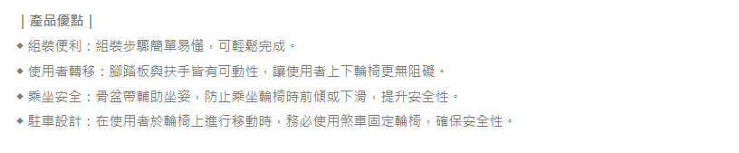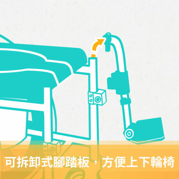– 可拆卸式腳踏板/可掀式扶手/可調整座高