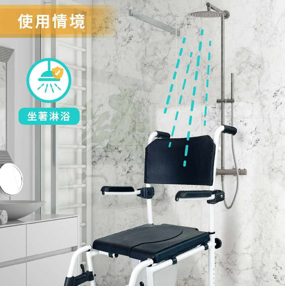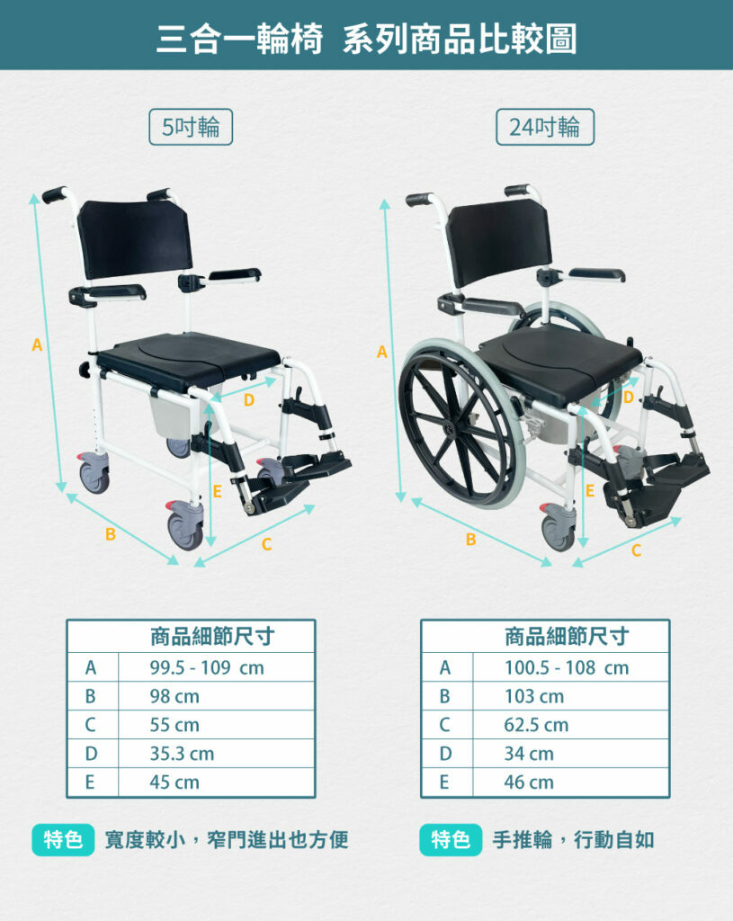 – 居家三合一輪椅-24吋手推輪 洗澡椅 便盆椅