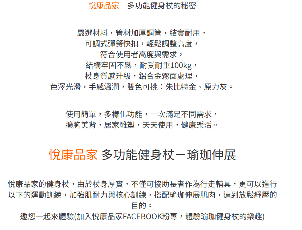 -輕鬆健走/核心訓練/瑜珈伸展/輔助行走/多功能健身杖-六千杖