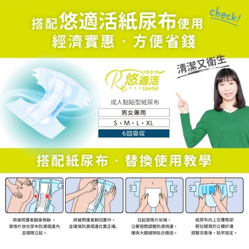 ● 搭配「悠適活 黏貼式紙尿布」使用,更經濟實惠