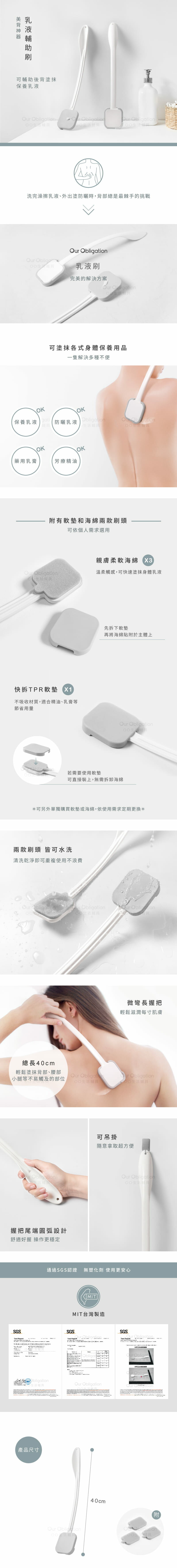 ★人體工學握把設計,讓您輕鬆背部擦乳液。