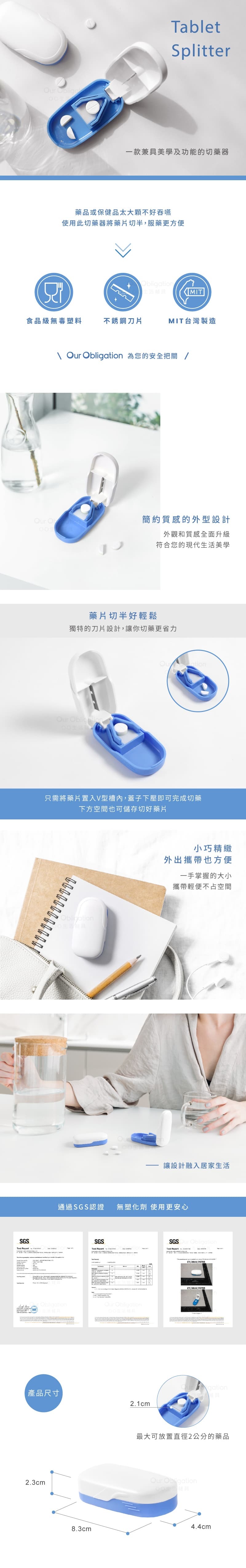 ★操作簡便:只需將藥片放入V型槽內,輕壓蓋子即可切半藥片。內部空間可儲存切好的藥片。